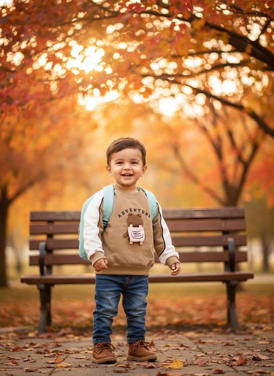 Made with soft, breathable fabric, this sweatshirt features a charming bear-with-backpack design that adds a cute and fun touch. The brown body paired with contrast white sleeves gives it a stylish sporty look, ideal for casual outings, playtime, or outdoor adventures.